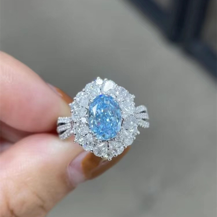 Anéis de Ring Wedding Ring Fancy Diamond do acoplamento de Diamond Jewelry Blue Oval Cut do laboratório