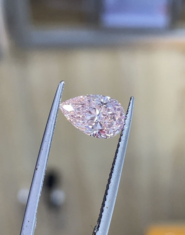 O diamante fraco da pera, rosa intenso extravagante, VS1, excelente, IGI certificou