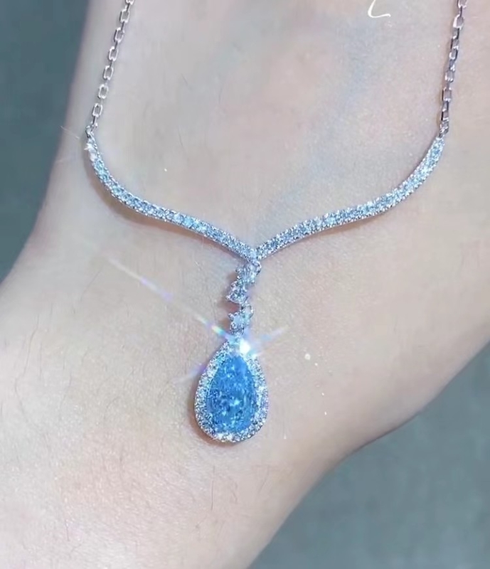 Pera Azul 18K Ouro Branco Diamante Claridade VVS2 Produção de jóias Engagement Laboratório de jóias Colar de diamante