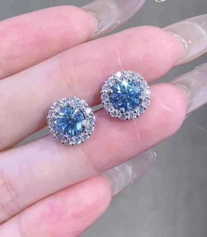 Joias de diamante azul corte redondo Ideias de noivado de casamento