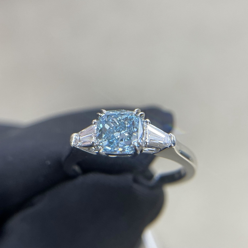Certificado IGI 1.13ct Cushion Laboratório cultivado Azul Diamante sintético 18k Ouro Mulheres Anel personalizado