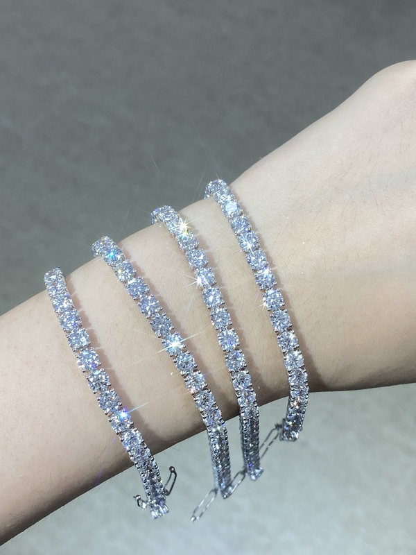 Pulseira de diamante de laboratório, a pulseira comBranco redondoDiamantes de tamanho pequeno à volta, pulseira de tênis para decoração, festa, aniversário, presente e aniversário.