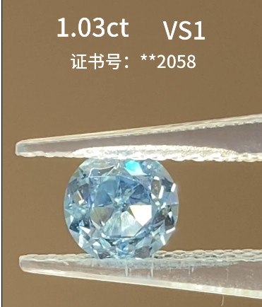 Diamante de laboratório azul redondo, VS1, excelente com certificação IGI
