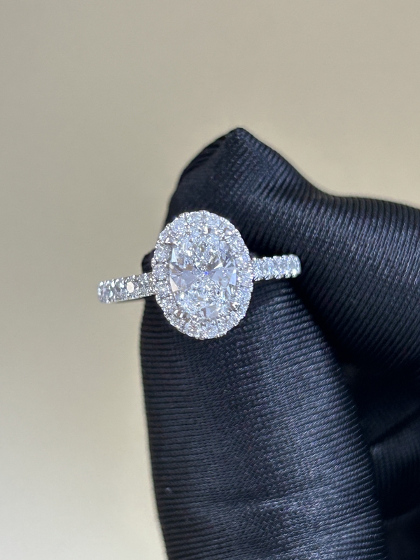Anel de diamante de forma oval PT950 Anel de diamante branco com personalização Halo